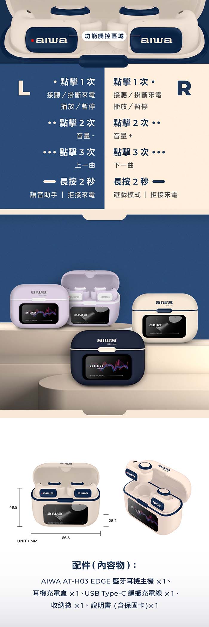 內容物:耳機、充電盒、USB Type-C編織充電線、收納袋