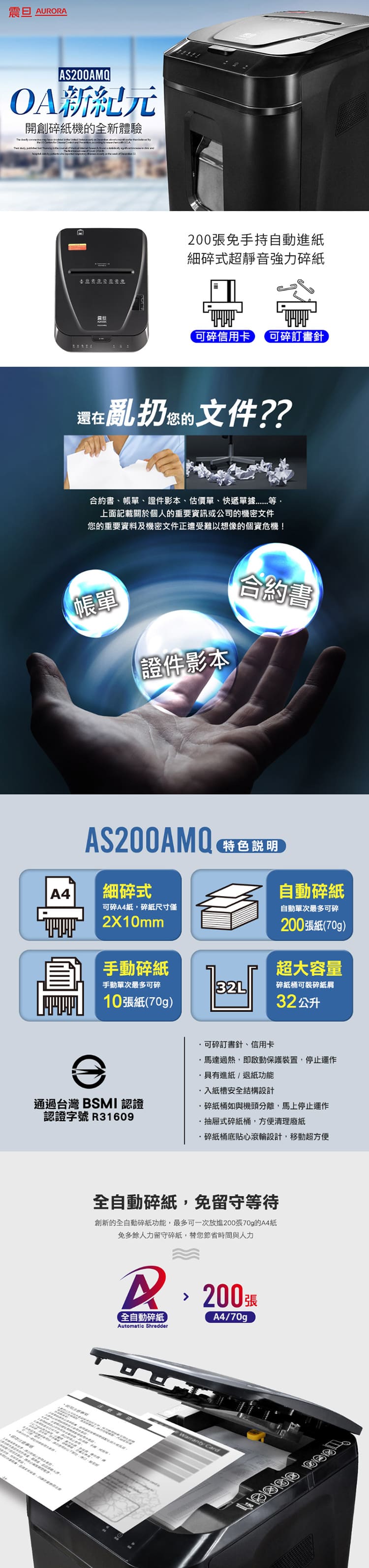 自動模式200張A4(70g)細碎式