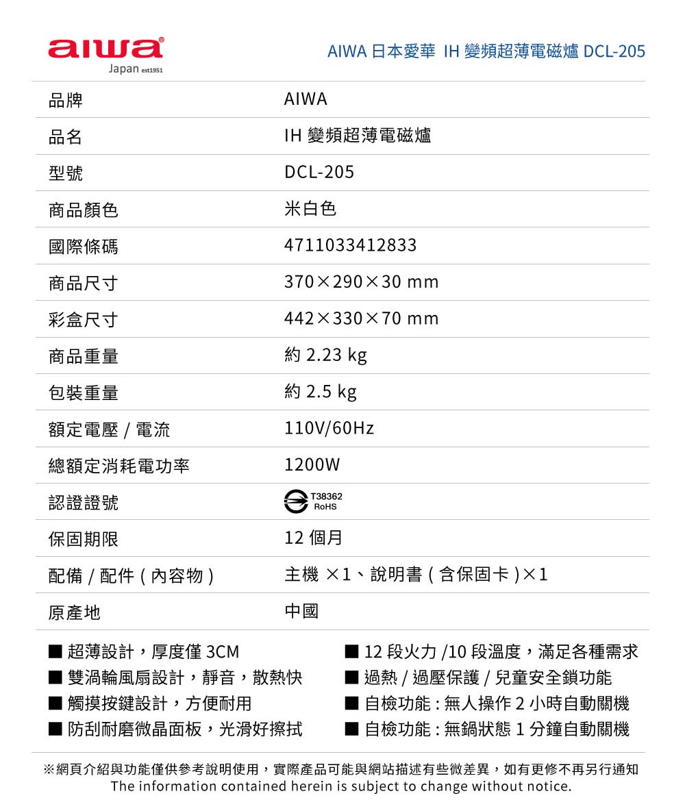 過熱/過壓保護/兒童安全鎖功能