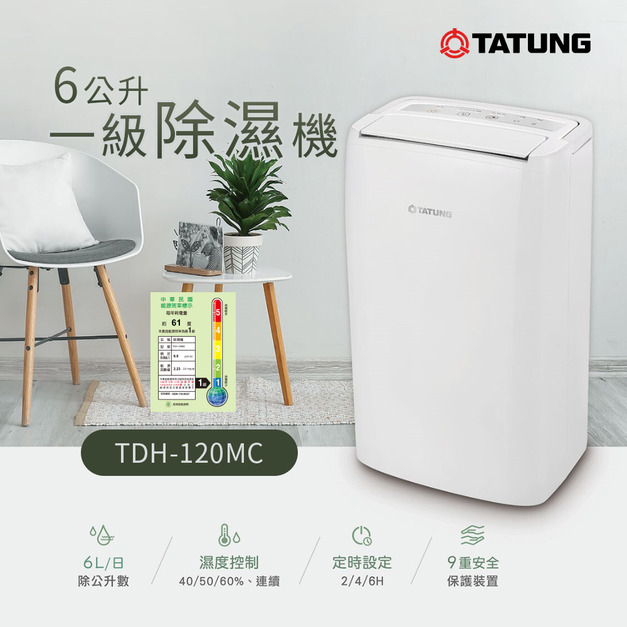 TATUNG 大同 一級能效6公升除濕機(TDH-120MC)|定時、濕度控制