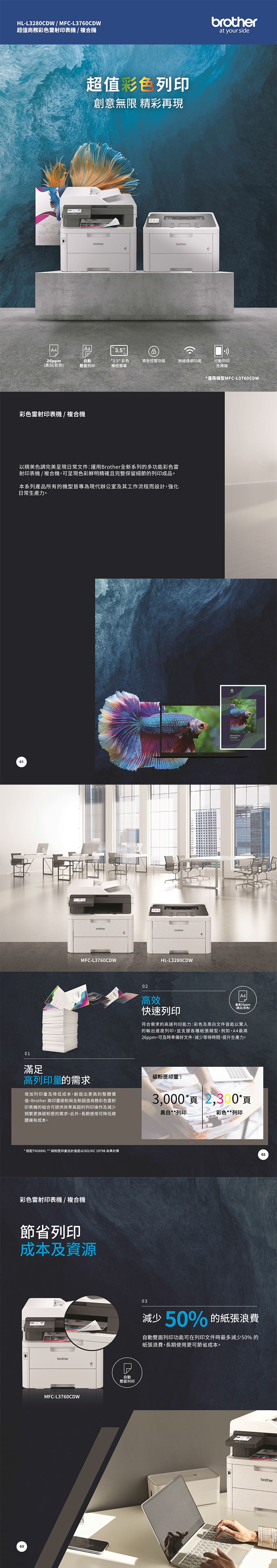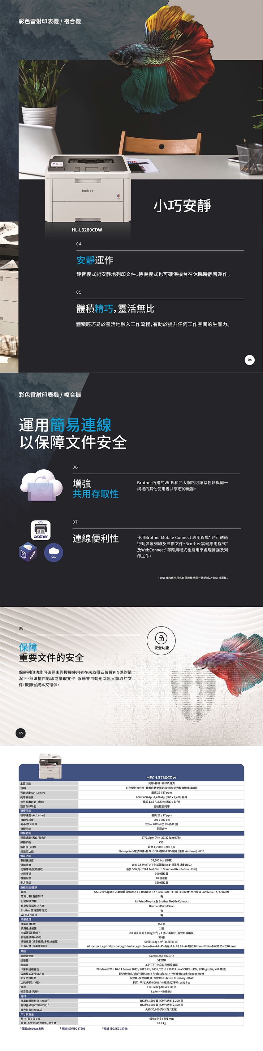 全新推出 MFC-L3760CDW 多功能雷射印表機與專業色彩解決方案。這是一款專門針對辦公室使用而生的印表機,具備種類齊全的實用公用程式和生產力功能,讓日常工作流程更順暢。