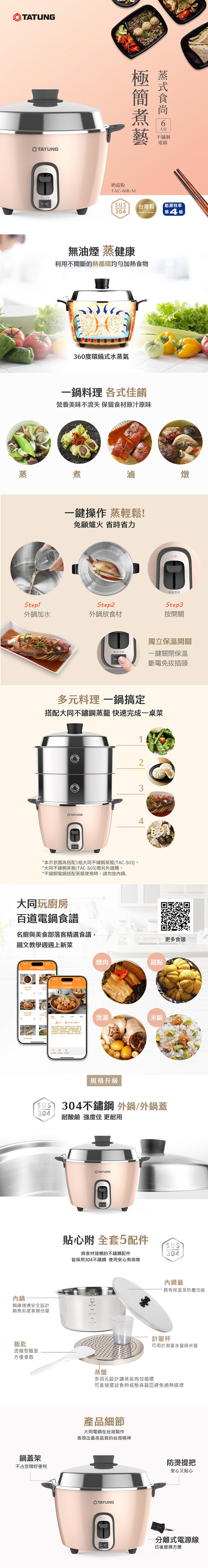 多元料理,煮飯/粥、蒸、滷、燉多用途