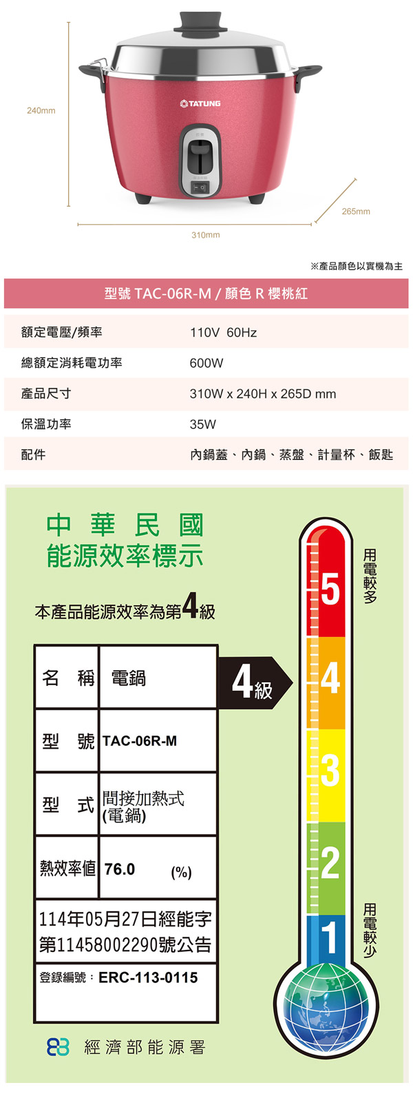 ■ 配件:內鍋、內鍋蓋、蒸盤、計量杯、飯匙