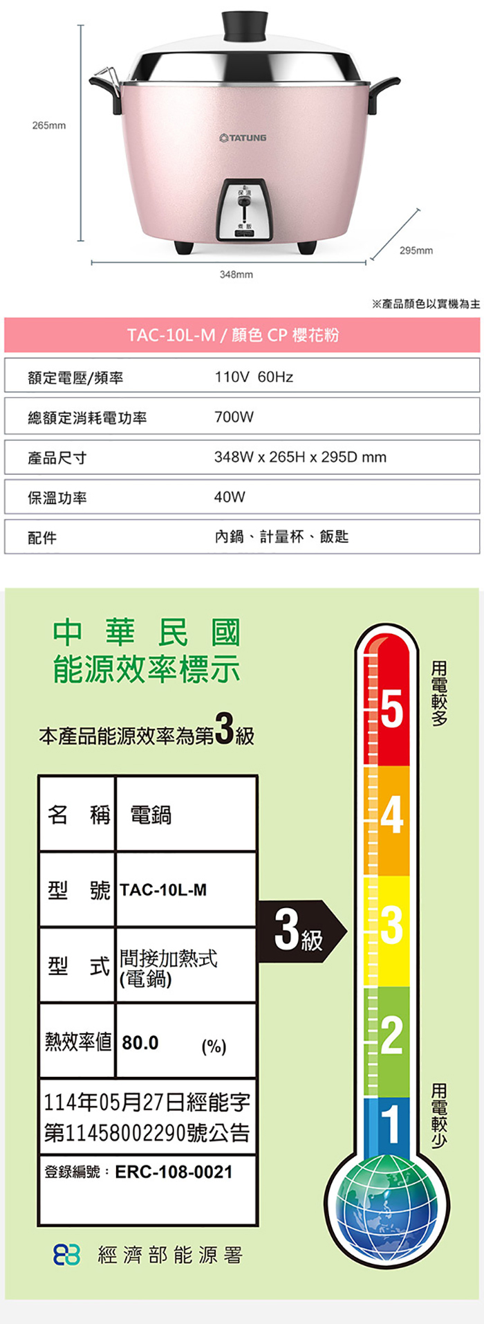 ■ 10人份電鍋,櫻花粉外殼