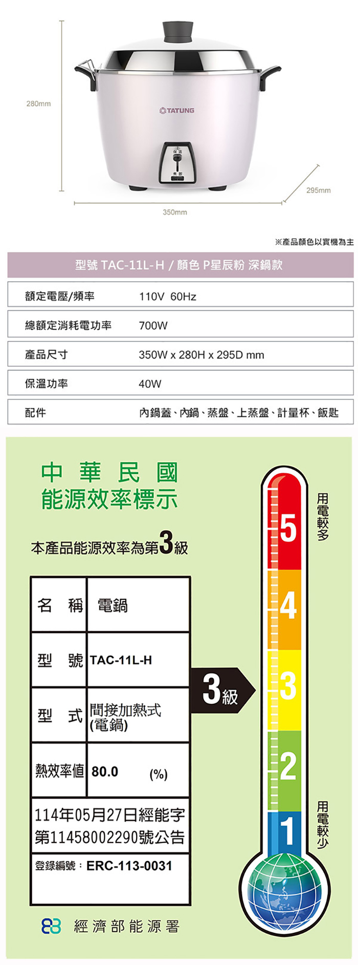 ◆ 此機型無保溫開關,電源線與主體為分離式 。