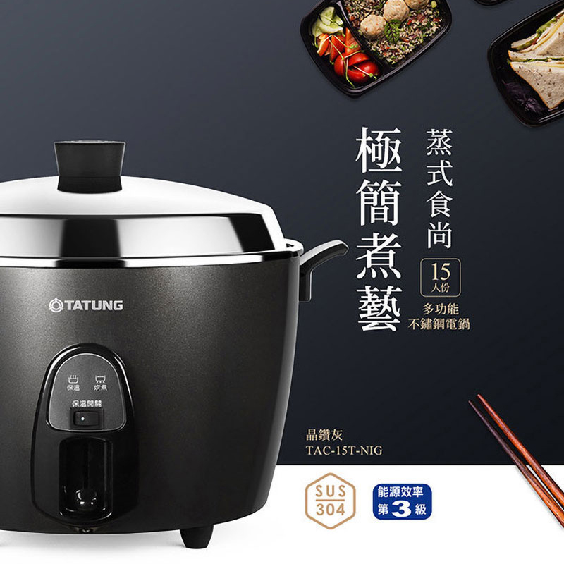 (1) 15人份電鍋,鐵灰外殼。