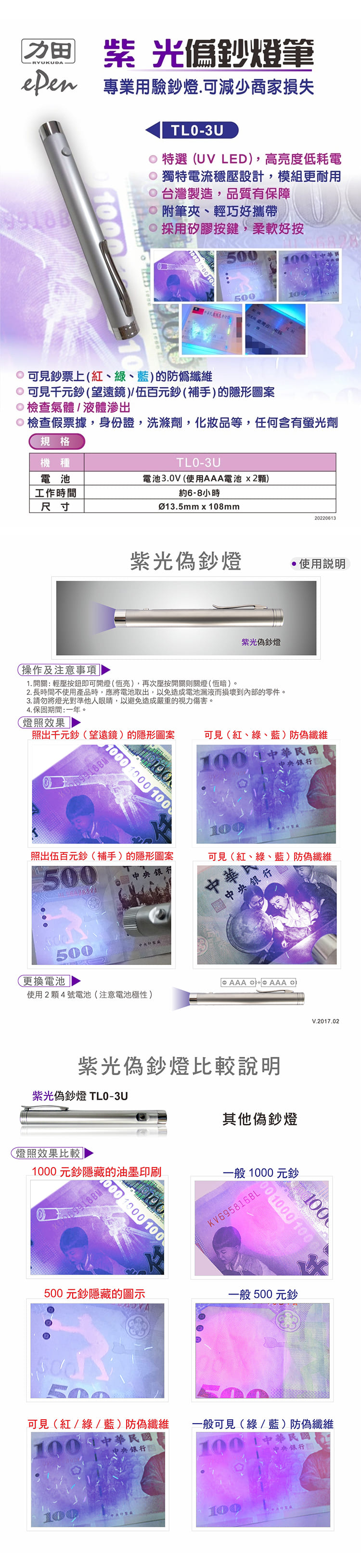 ■ 紫光驗鈔燈,可減少商家損失
