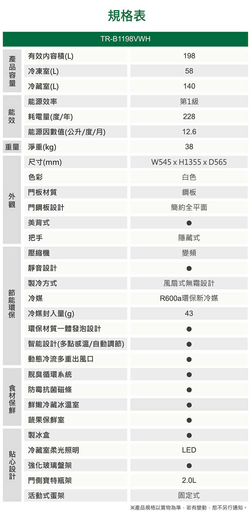 型號:TR-B1198VWH