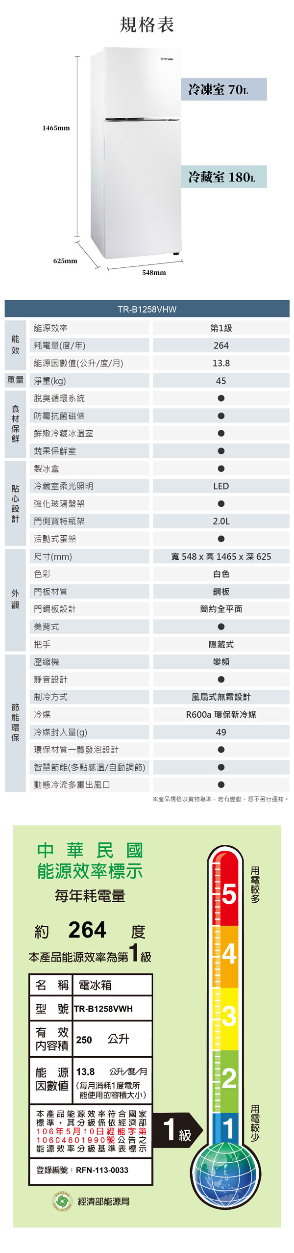 型號:TR-B1258VWH