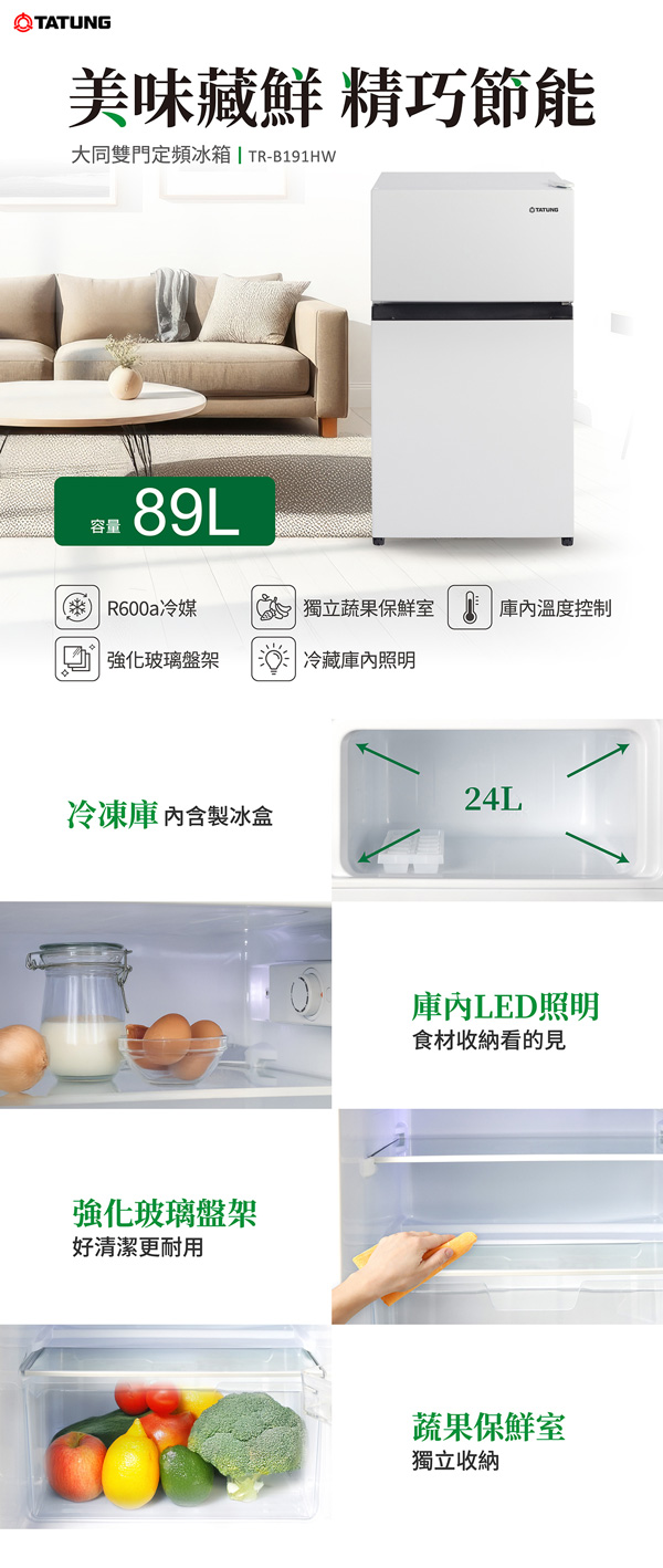 獨立蔬果保鮮室設計,採用R600a環保新冷媒
