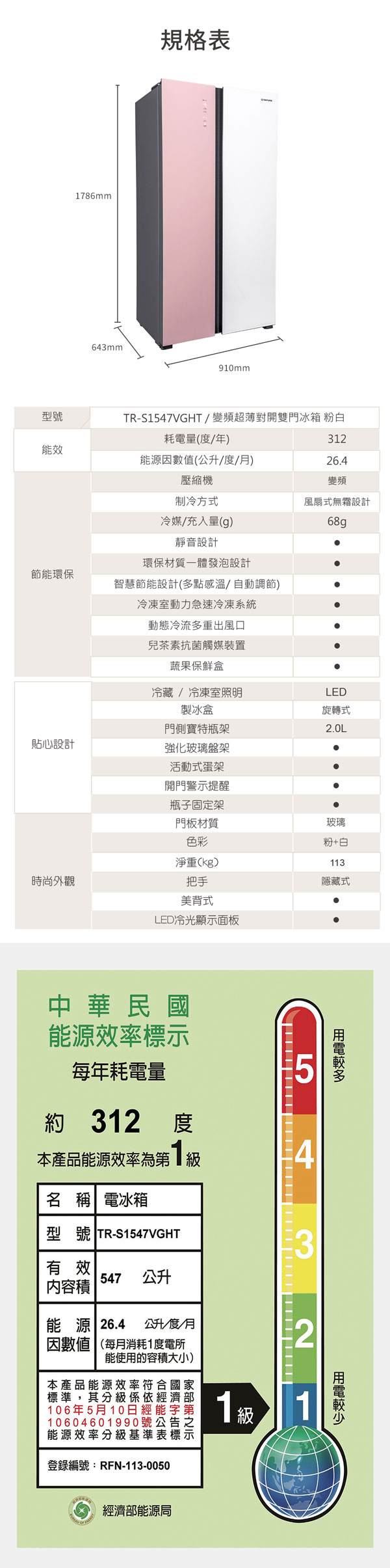 耗電量:312度/年