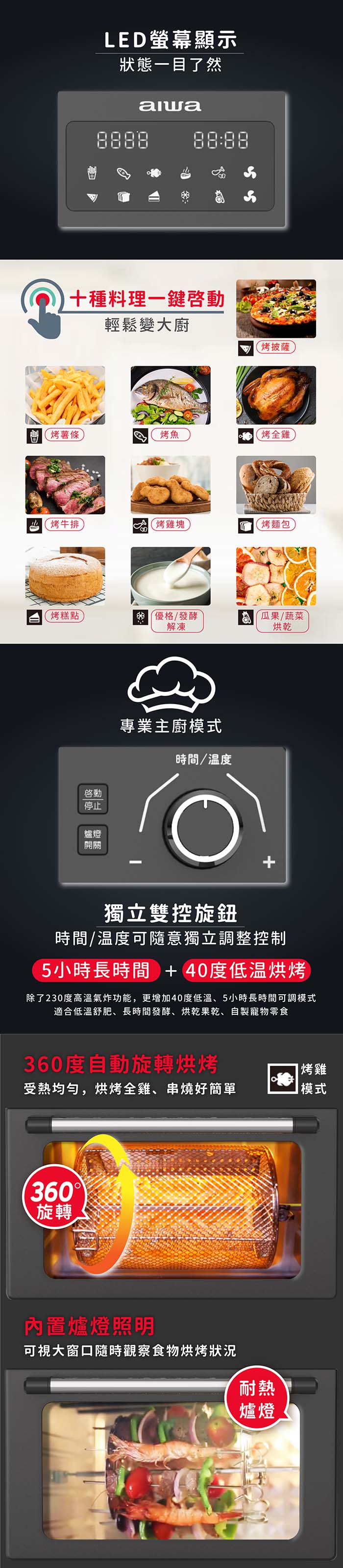 60分鐘時間設定、230度溫度控制